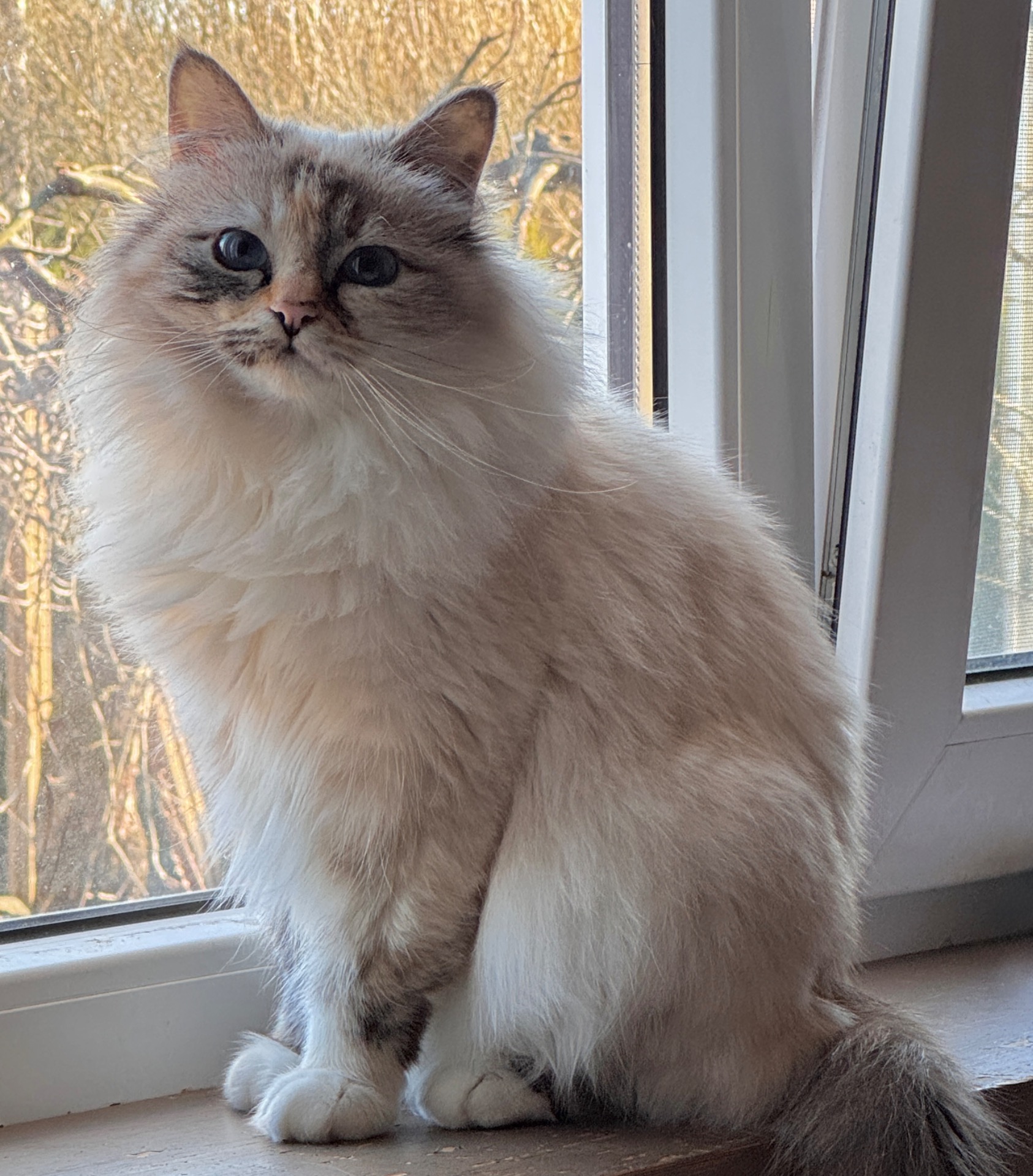Lumivuoren Li-Ming Mei, ruskeanaamio (s.16.6.2021) jäi kotiin Sofian 2021 kesäpentueesta. Matilda on rauhallinen, seurallinen, äärettömän ihmisrakas ja puhelias pikkurouva ja tulee mainiosti toimeen sekä talon muiden kissojen, että koirien kanssa.